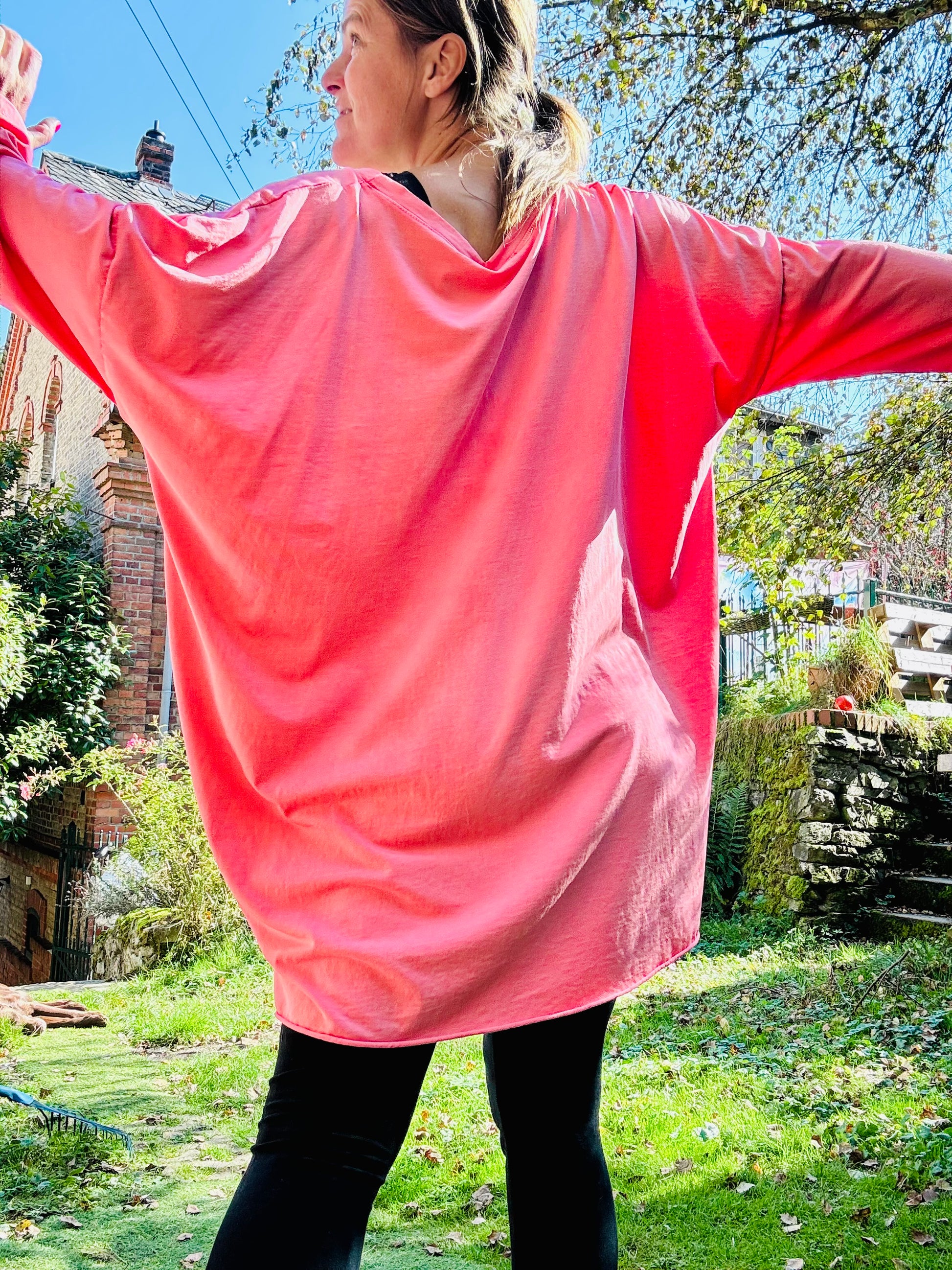 locker auch weit über Größe 50 tragbar; hinten länger als vorn, weiter Halsausschnitt