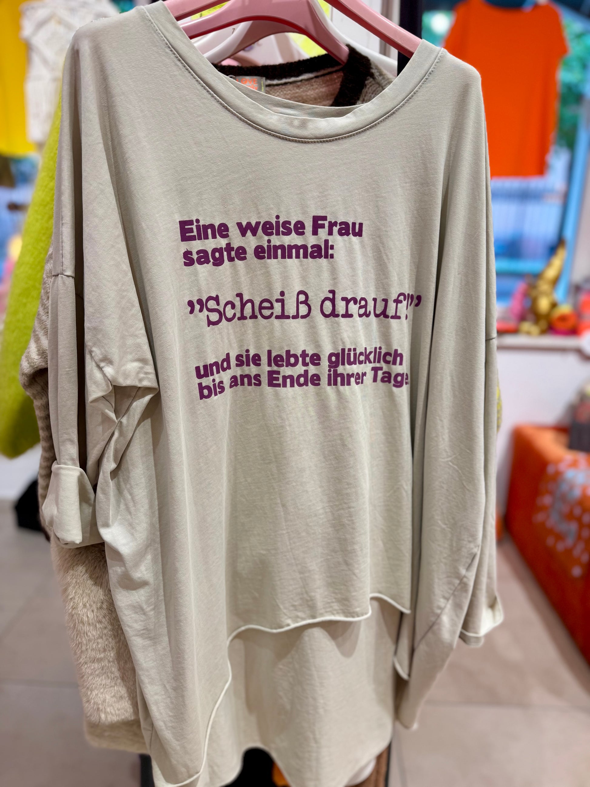 BIGSIZE langarm shirt scheiss drauf - immer wieder wechselnd verschiedene Motive und Farben, Nicht traurig sein, wenn mal die ein oder andere Farbe oder das ein oder andere Motiv ausverkauft ist - diese Shirts produziere ich immer wieder neu.
