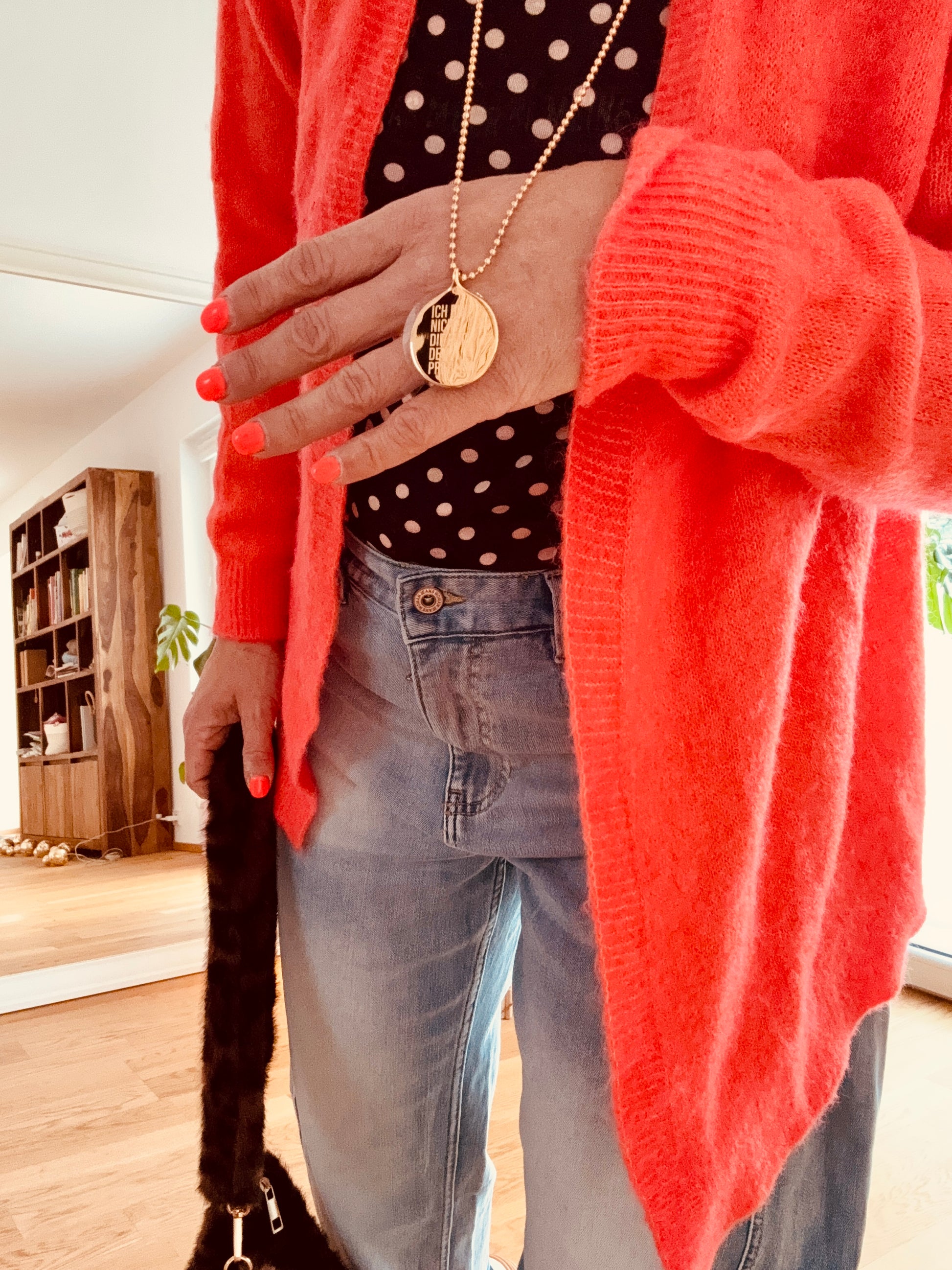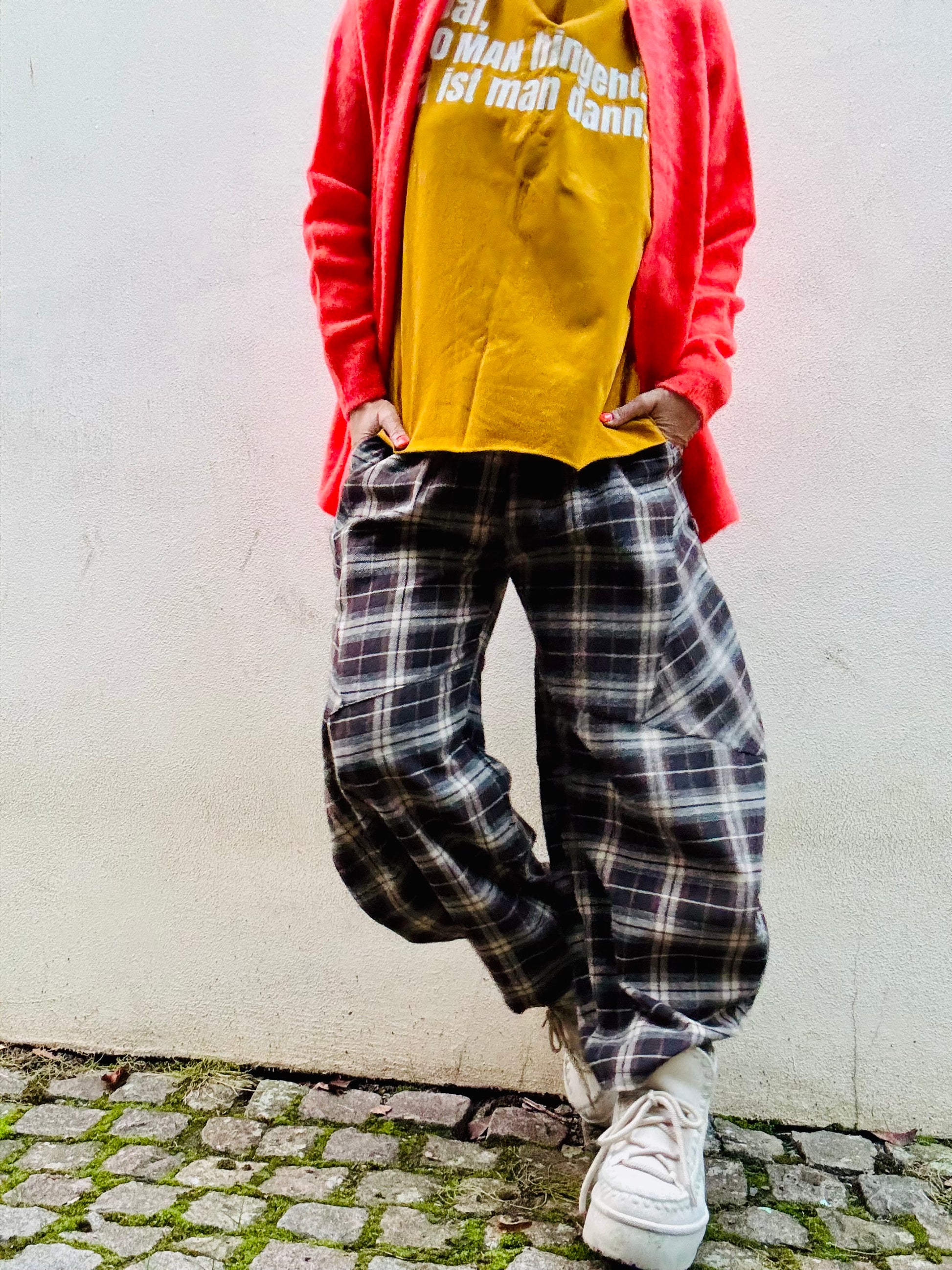 Ich bin schockverliebt in diesen Cardigan. Farben sind der Hammer. Er trägt sich einfach super weich auf der Haut, offen, perfekt über mein Cashmere Leo Top aber auch zu Hosen ein Träumchen.