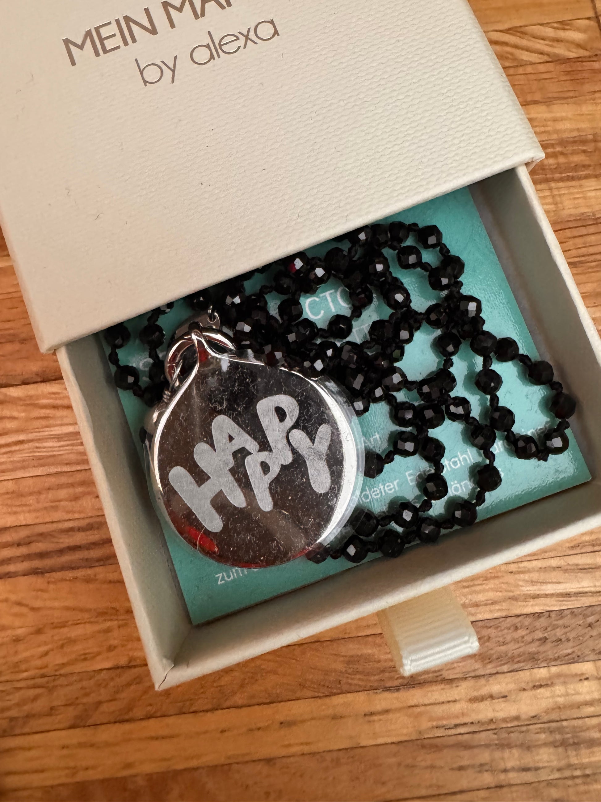 „Happy“ Dieser besondere Schmuckstück erinnert dich daran, dass Glück hausgemacht ist. Glücklich ist, wer glücklich sein will. Glück in sein Haus, in seine Seele lässt. Sich an kleinen Dingen erfreut, Momenten. Und dieser Positivität viel mehr Raum gibt, als die kleinen Problemchen, die uns erinnern, dass das Leben Höhen UND Tiefen hat, uns die Tiefen aber immer nach vorne katapultieren. Alles zu seiner Zeit.