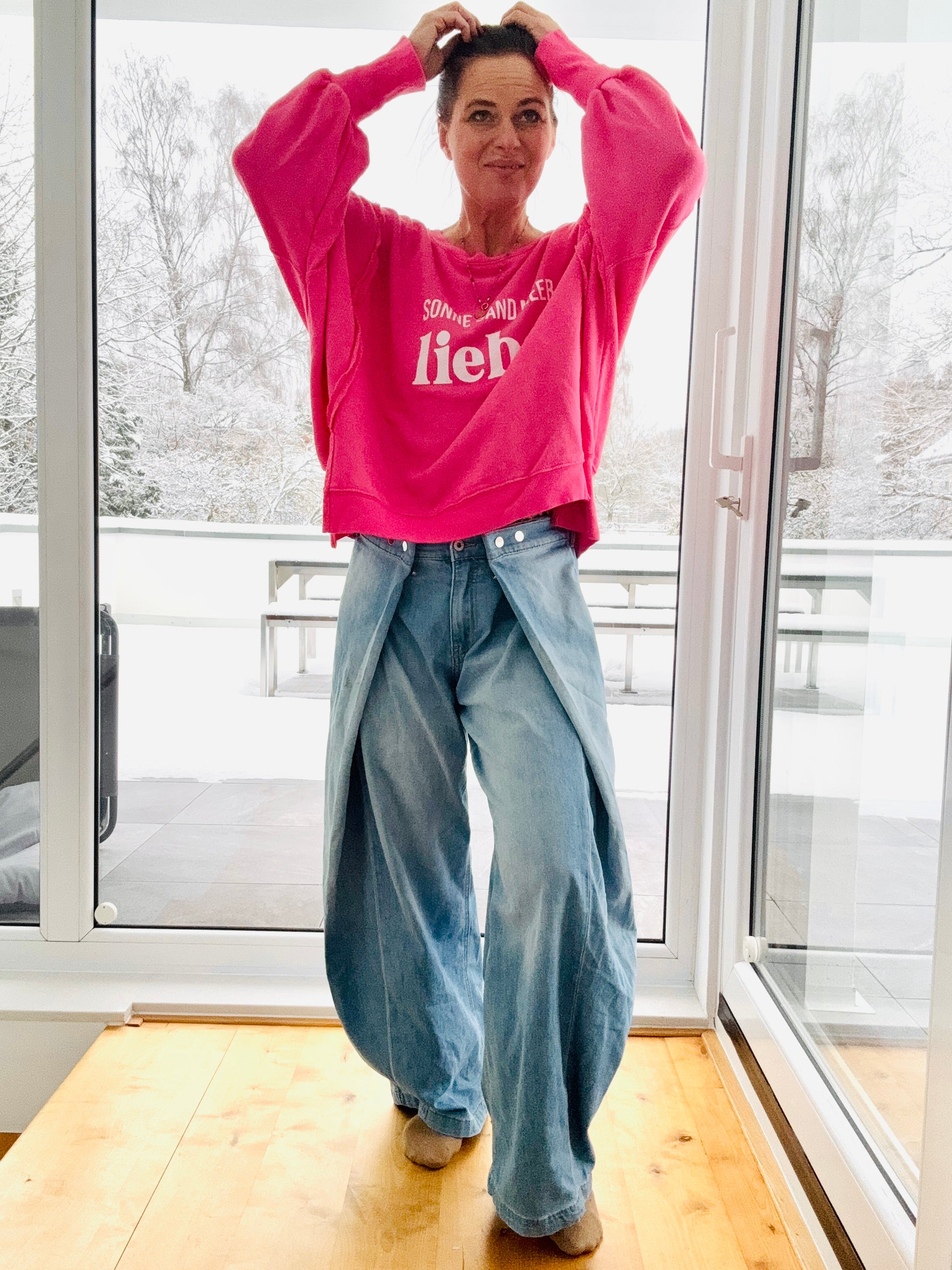 Lieblings Sweatshirt Sonne Sand Meer liebs, trage ich hier mit der FLOW Jeans