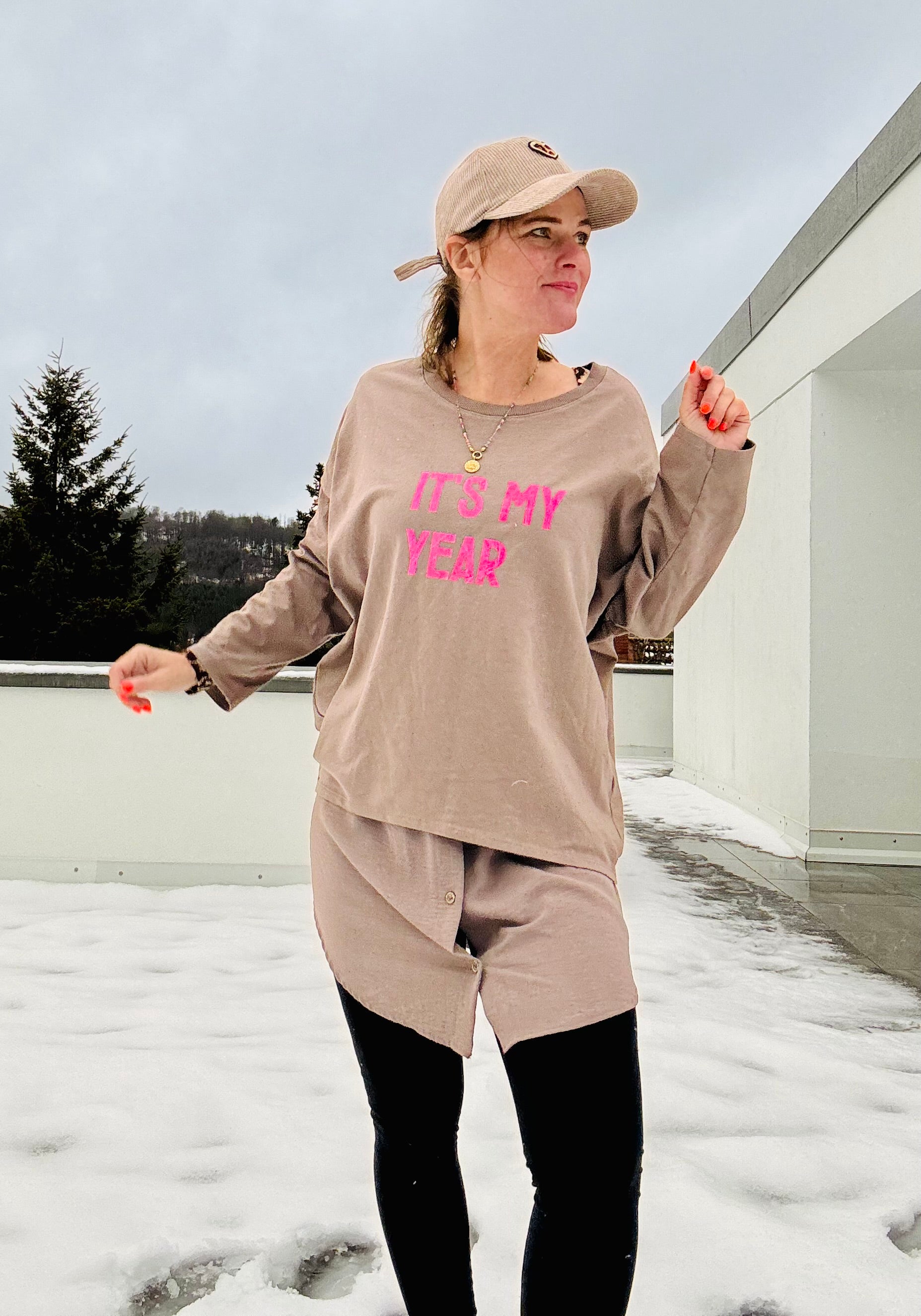 ich trage dazu die Leggings FLOW und die Blusenverlängerung in taupe.