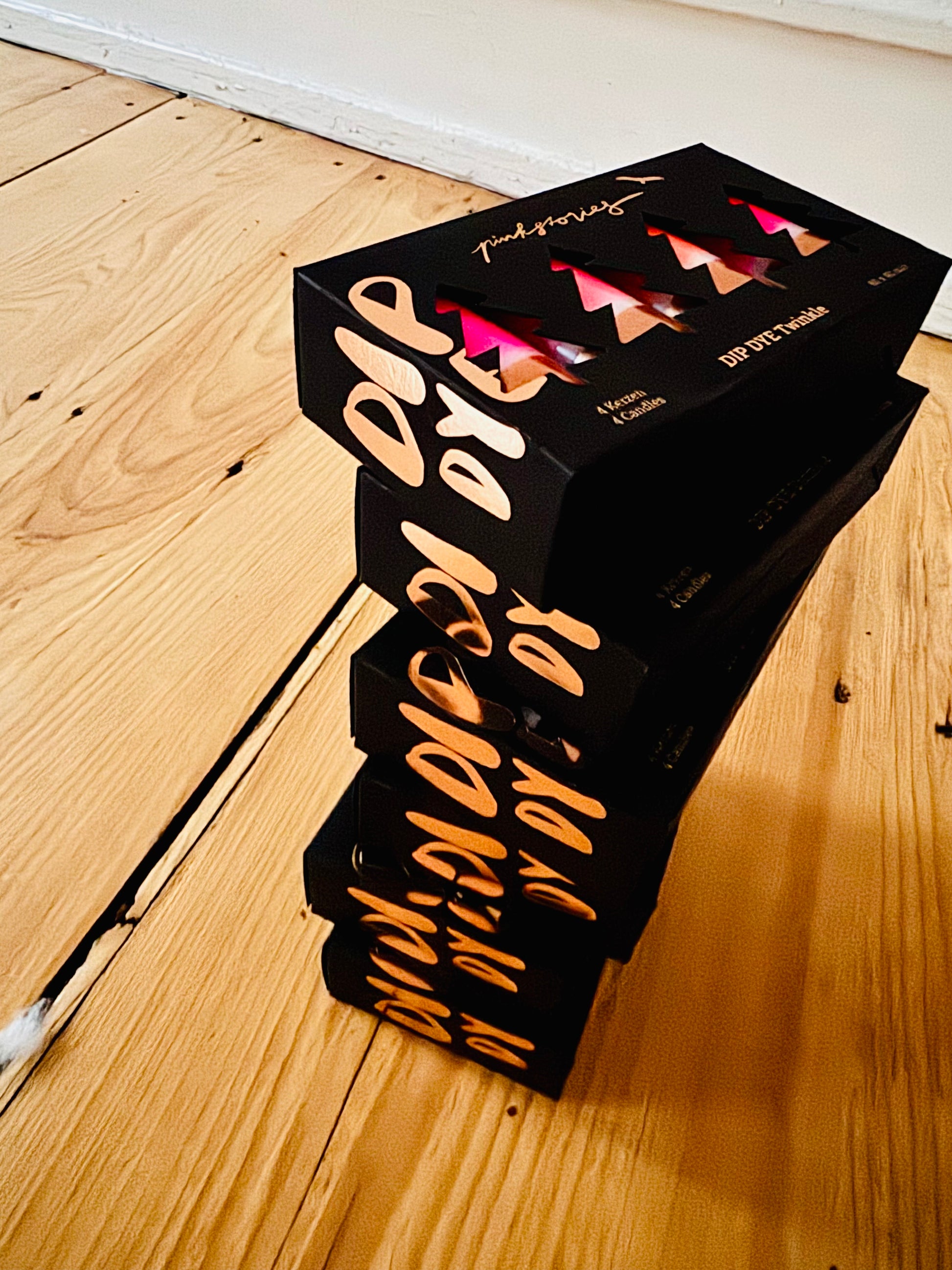 Die Dip Dye Twinkle 4er Set Kerzen von Pink Stories sind ein Set aus vier kleinen Stumpenkerzen, die alle in sorgfältiger Handarbeit hergestellt werden und jedem Raum einen Hauch von Eleganz verleihen.