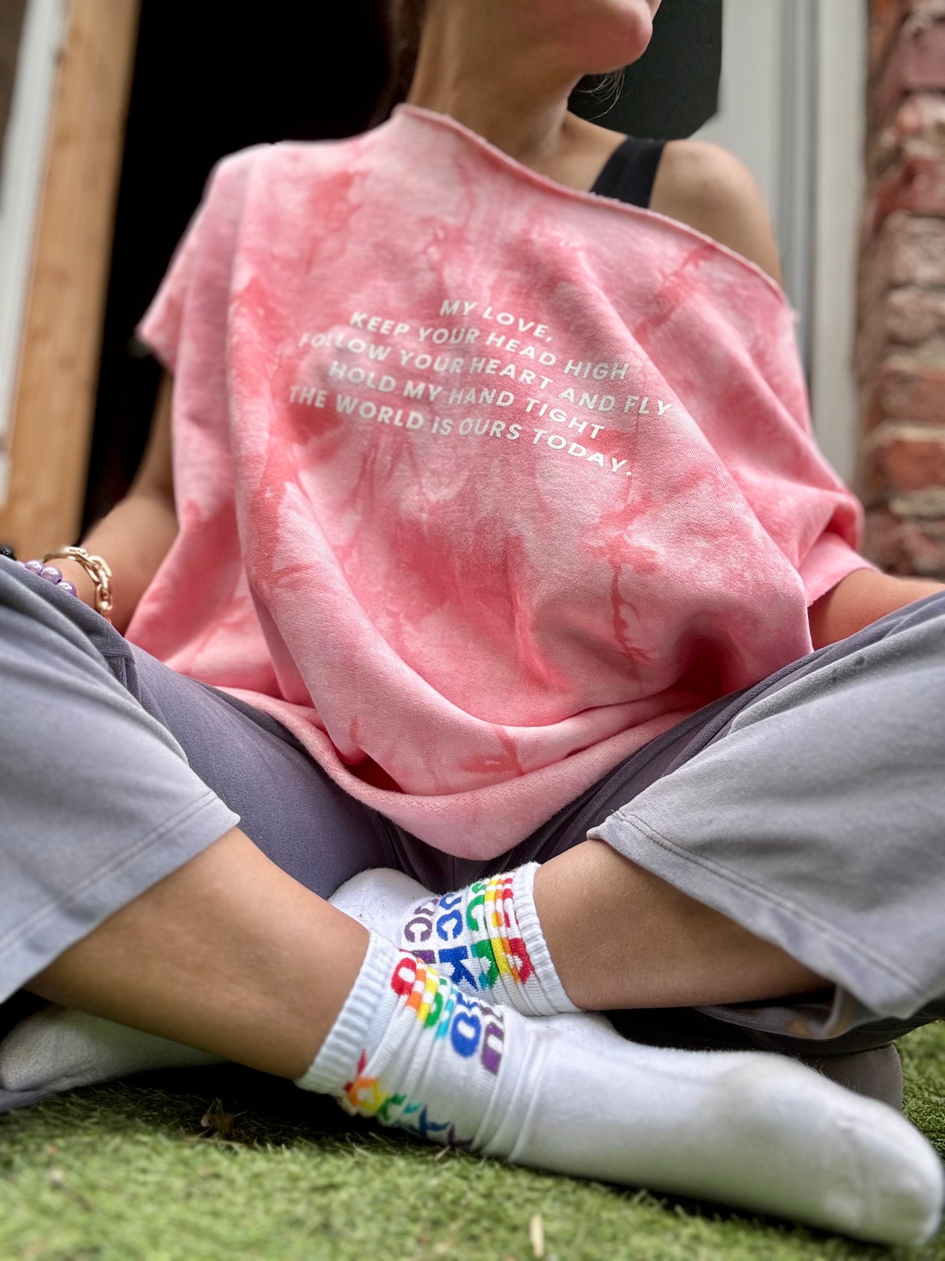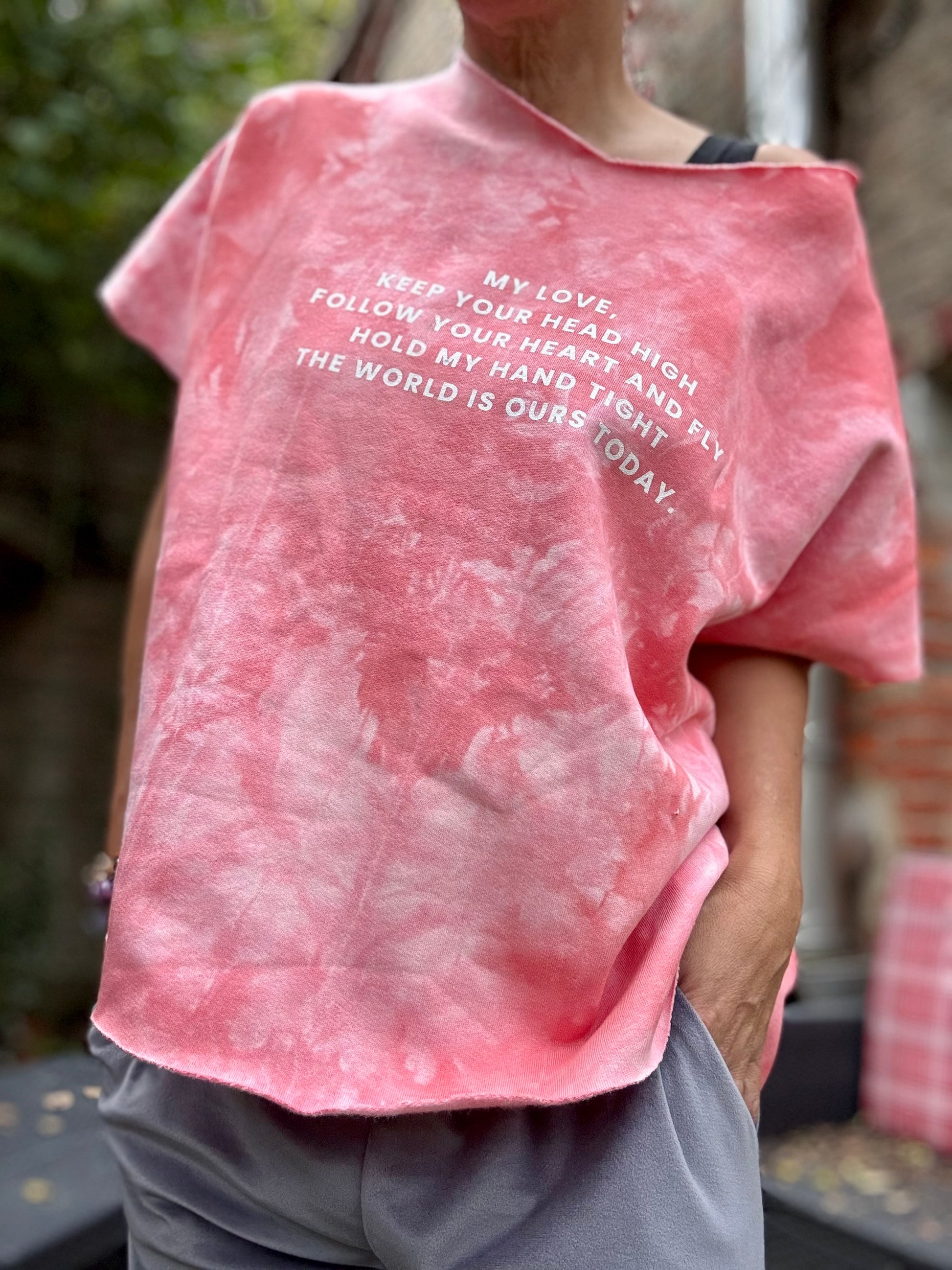 Unsere selbstgenähten the world is ours today Batik Shirts sind innen ganz weich und warm. Sehen toll über den Cashmere Tops aus oder ohne was drunter.