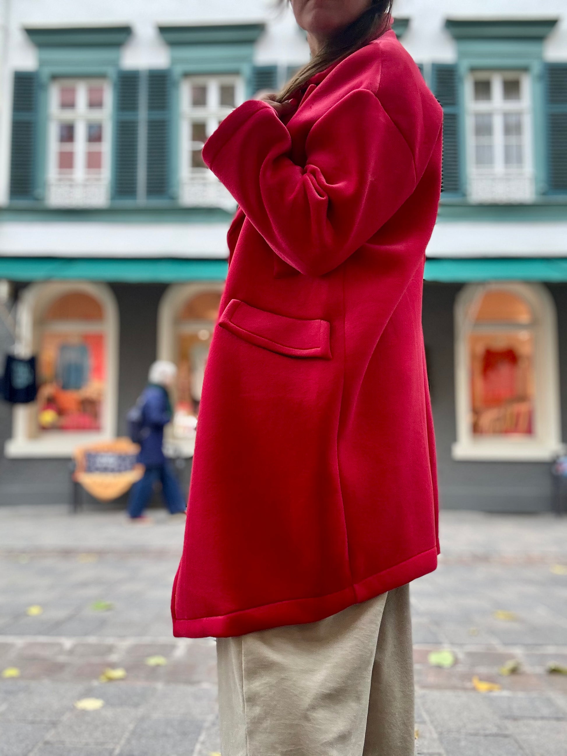 Mantel in einer tollen Samtoptik, weich und ein klares Farbenstatement zugleich.