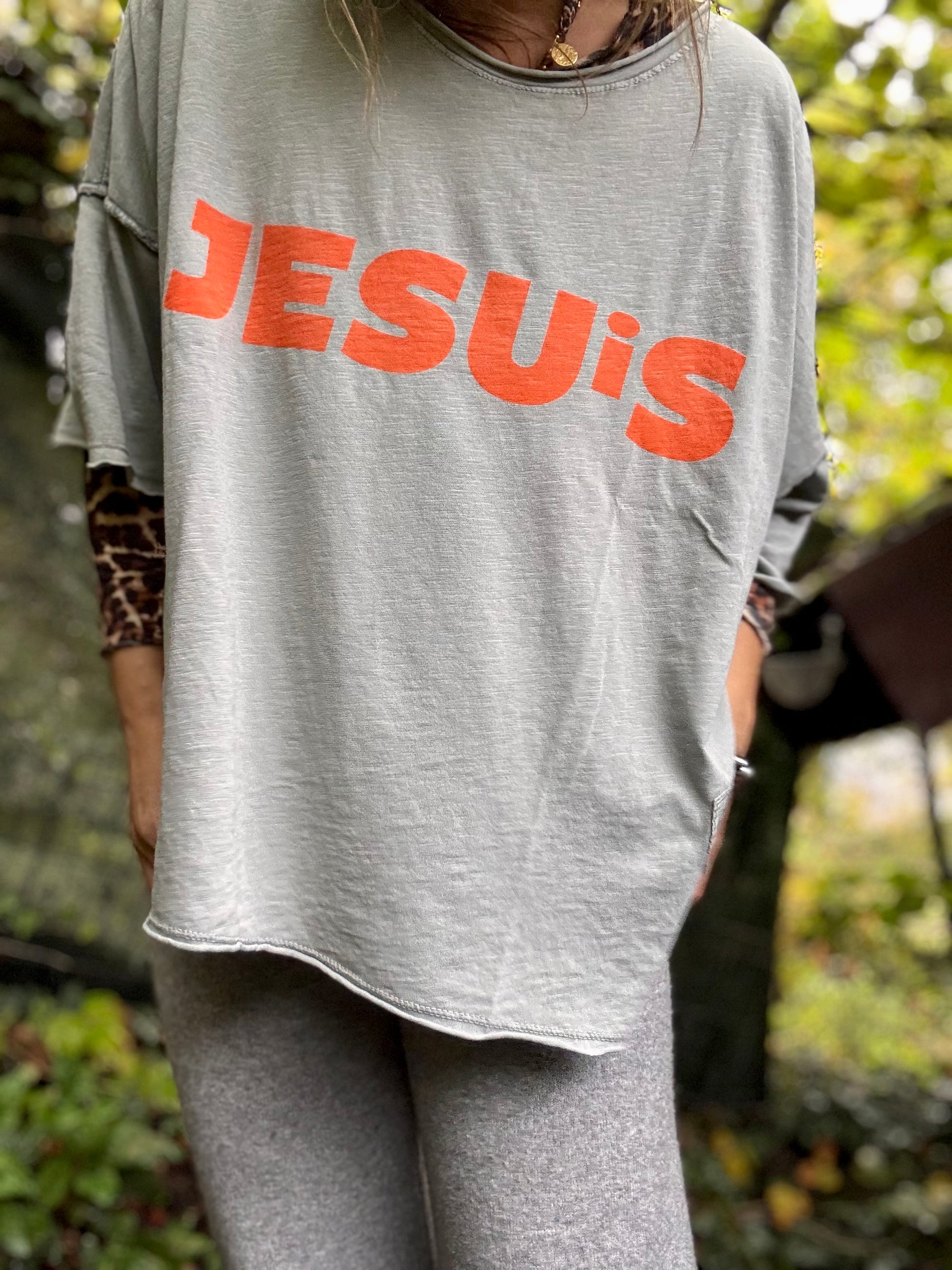 Toller Schnitt, lässig, weit, mega Farbe und das schönste Statement, Doppeldruck weiß auf gelb. Dass es nicht übereinander liegt ist Absicht!