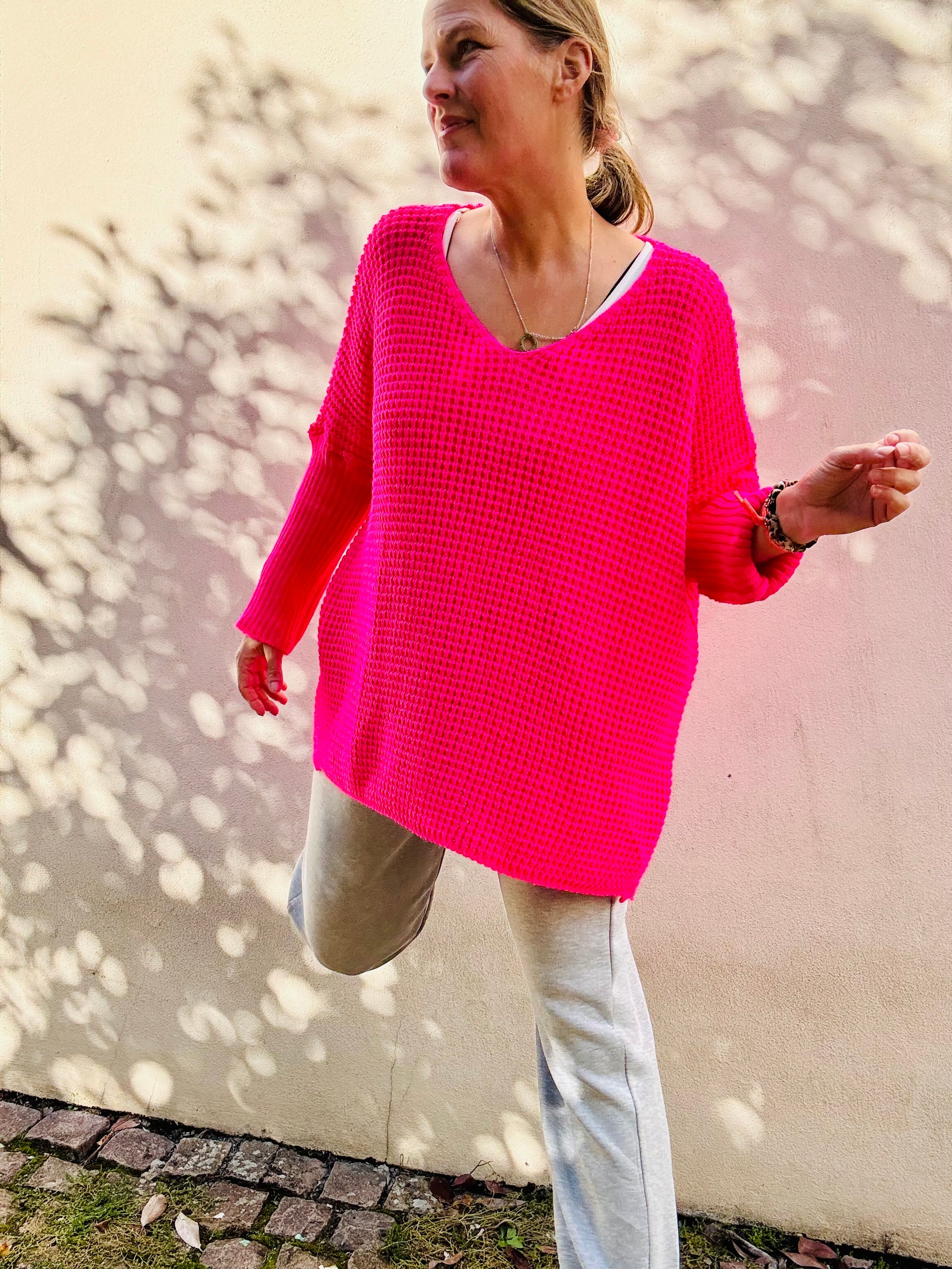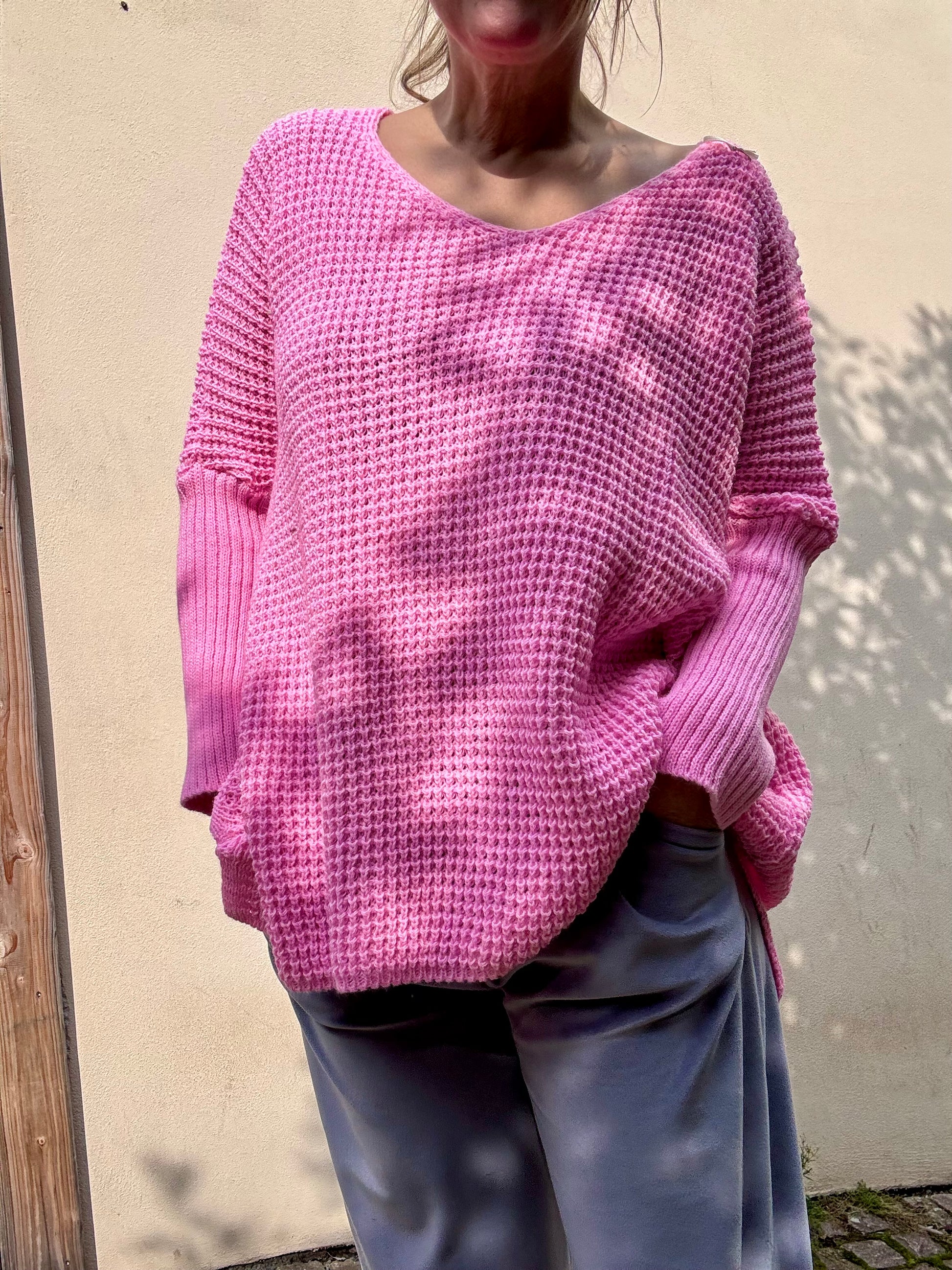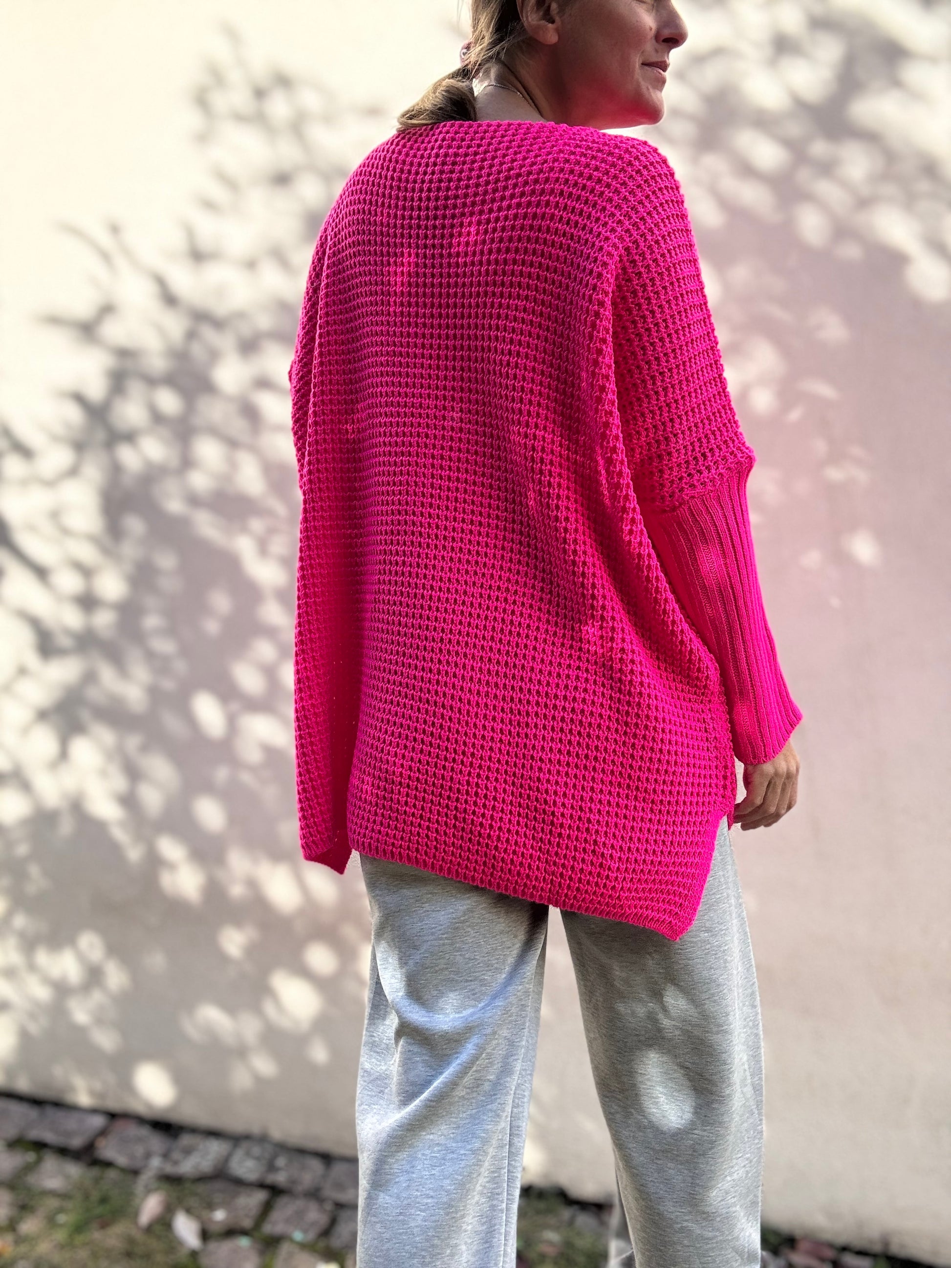 Tolle Passform, hinten länger als vorn, V-Ausschnitt, Enge und lange Bündchen für viele Tragevarianten.