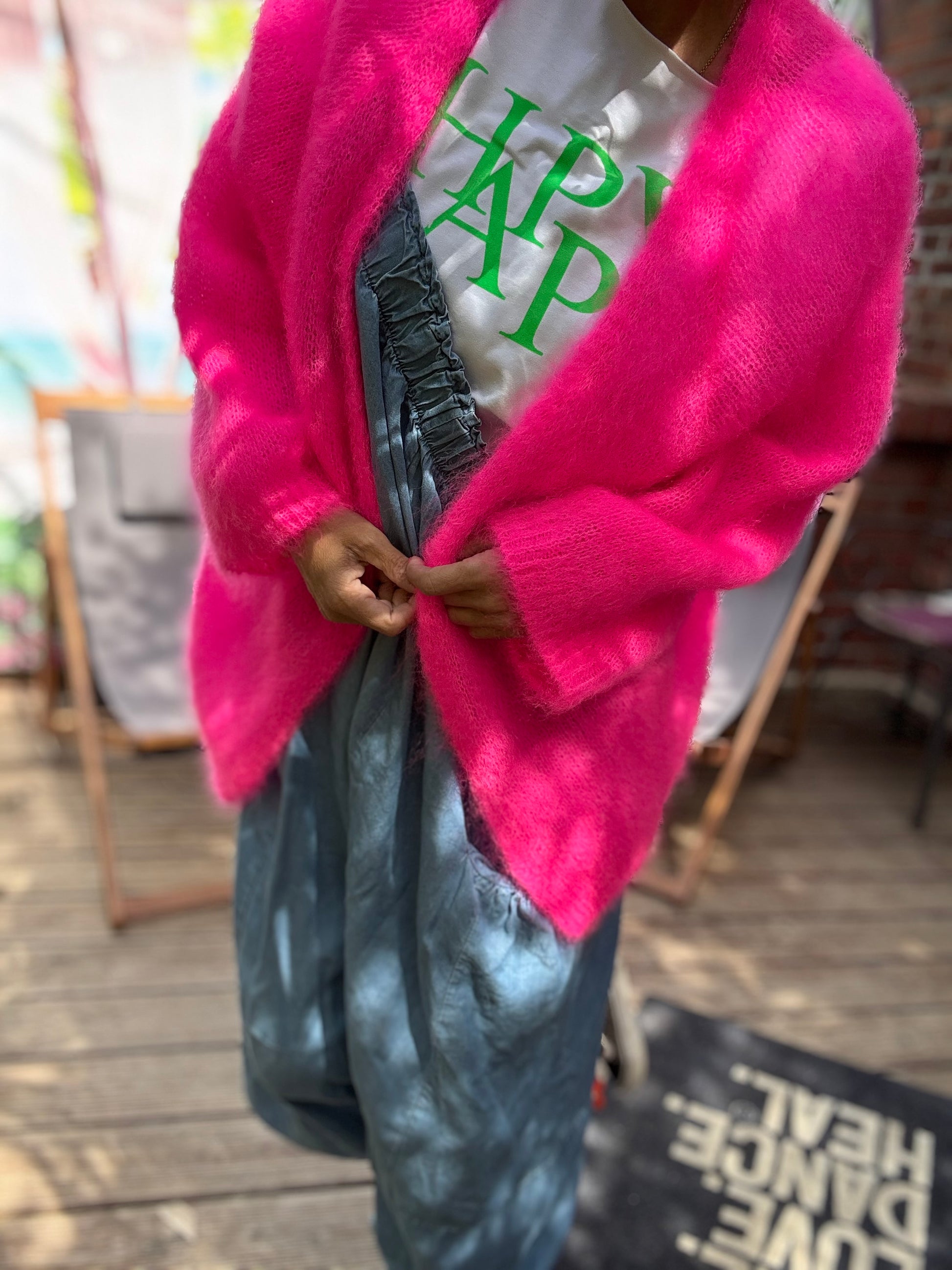T-Shirt HAPPY, Pink auf mint, Aufdruck aktuell quer